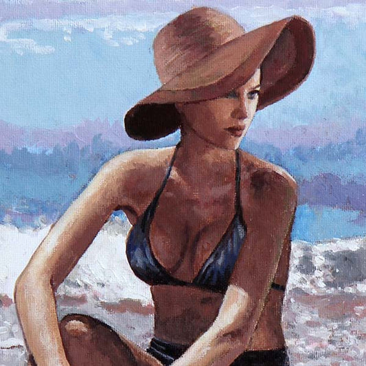 Oil Painting, Girl Sitting By The Water