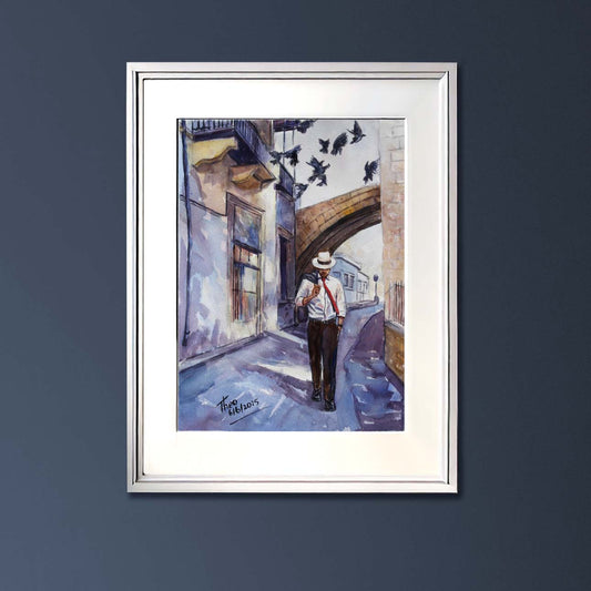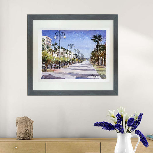 Watercolour painting, Finikoudes Palm Tree Promenade