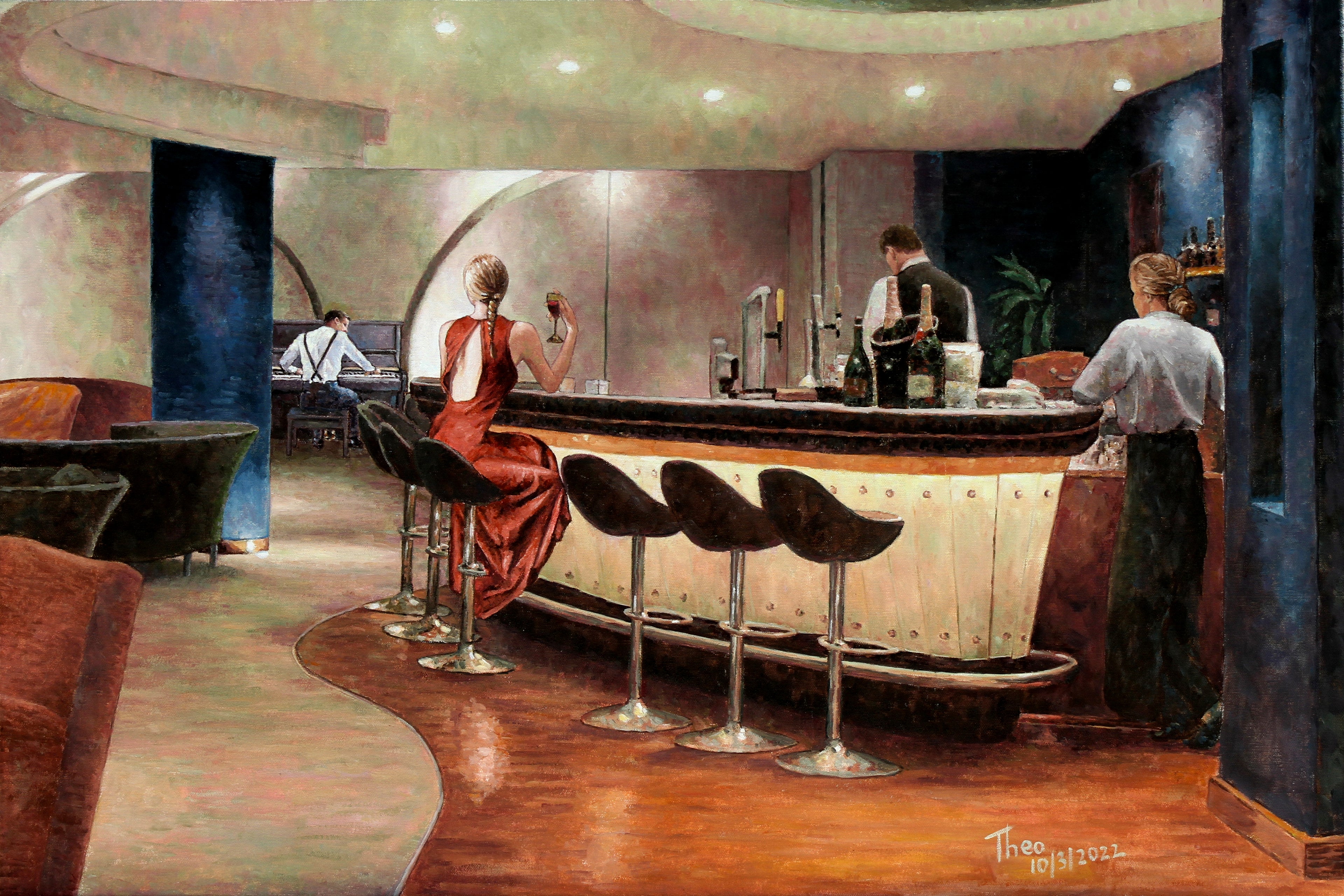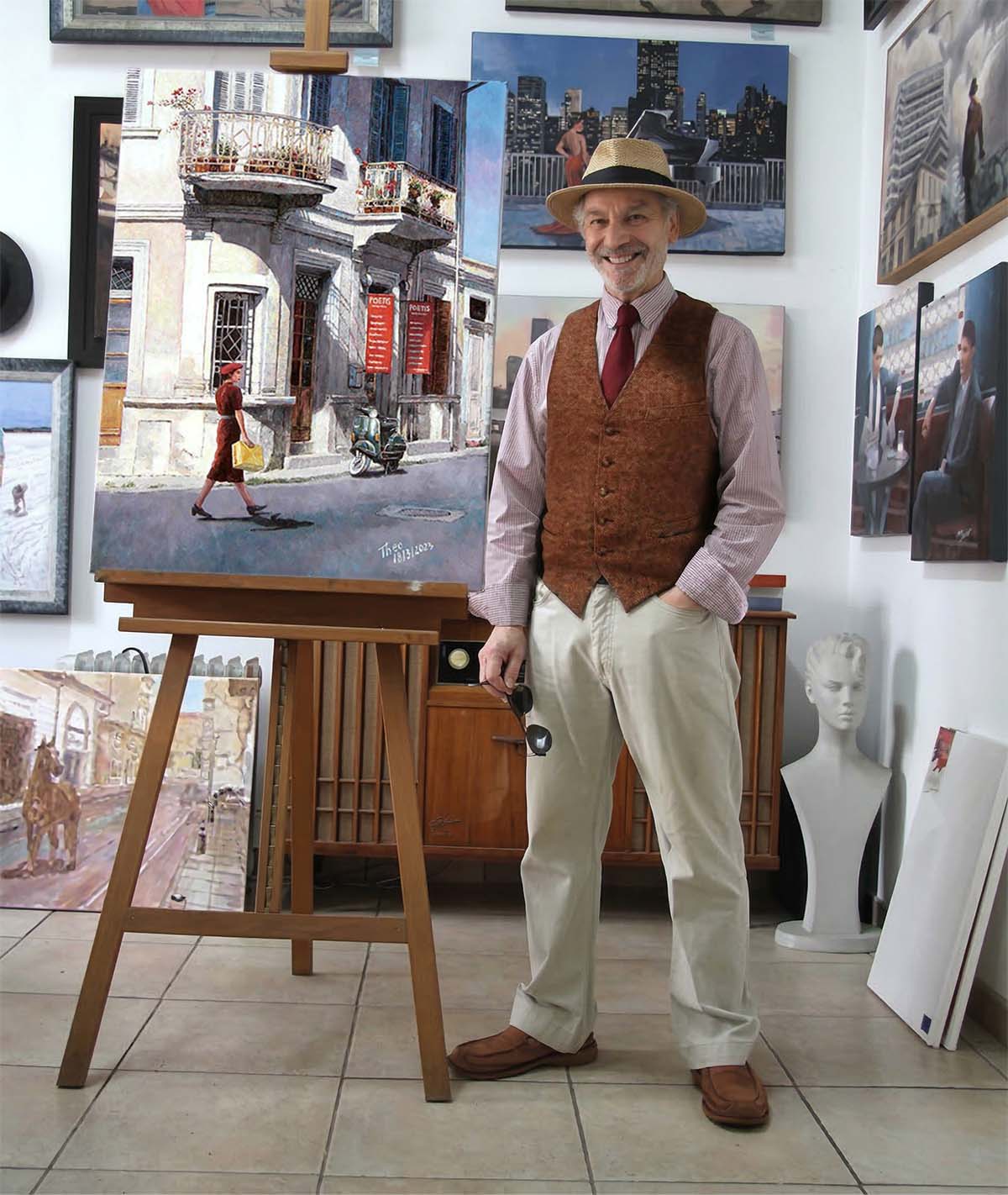 Today, Theo’s original oil paintings are held in discerning private collections worldwide—from the United Kingdom and Germany to the United States and Australia.