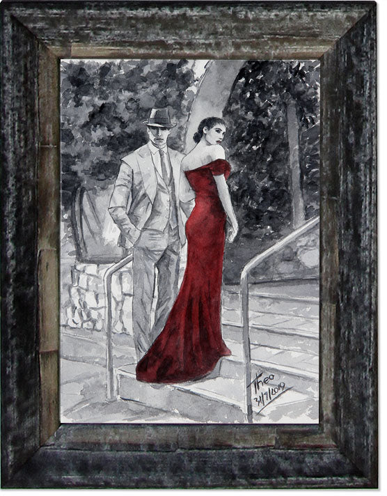 Couple At Militzis, an original watercolour sketch by Theo Michael